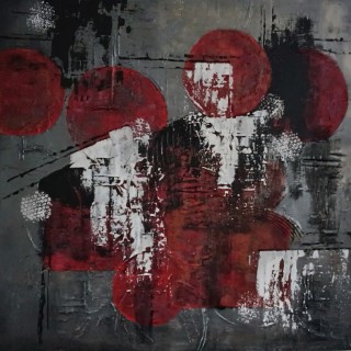 Judy Bakker (1952) exposeert hier met haar eigen werk, dat bestaat uit abstracte schilderijen en beeldjes.